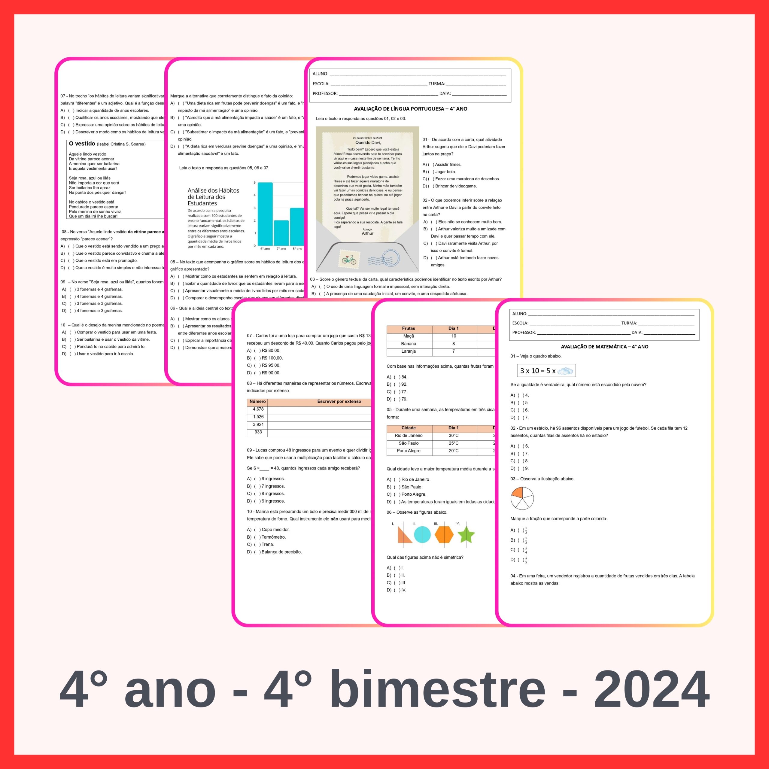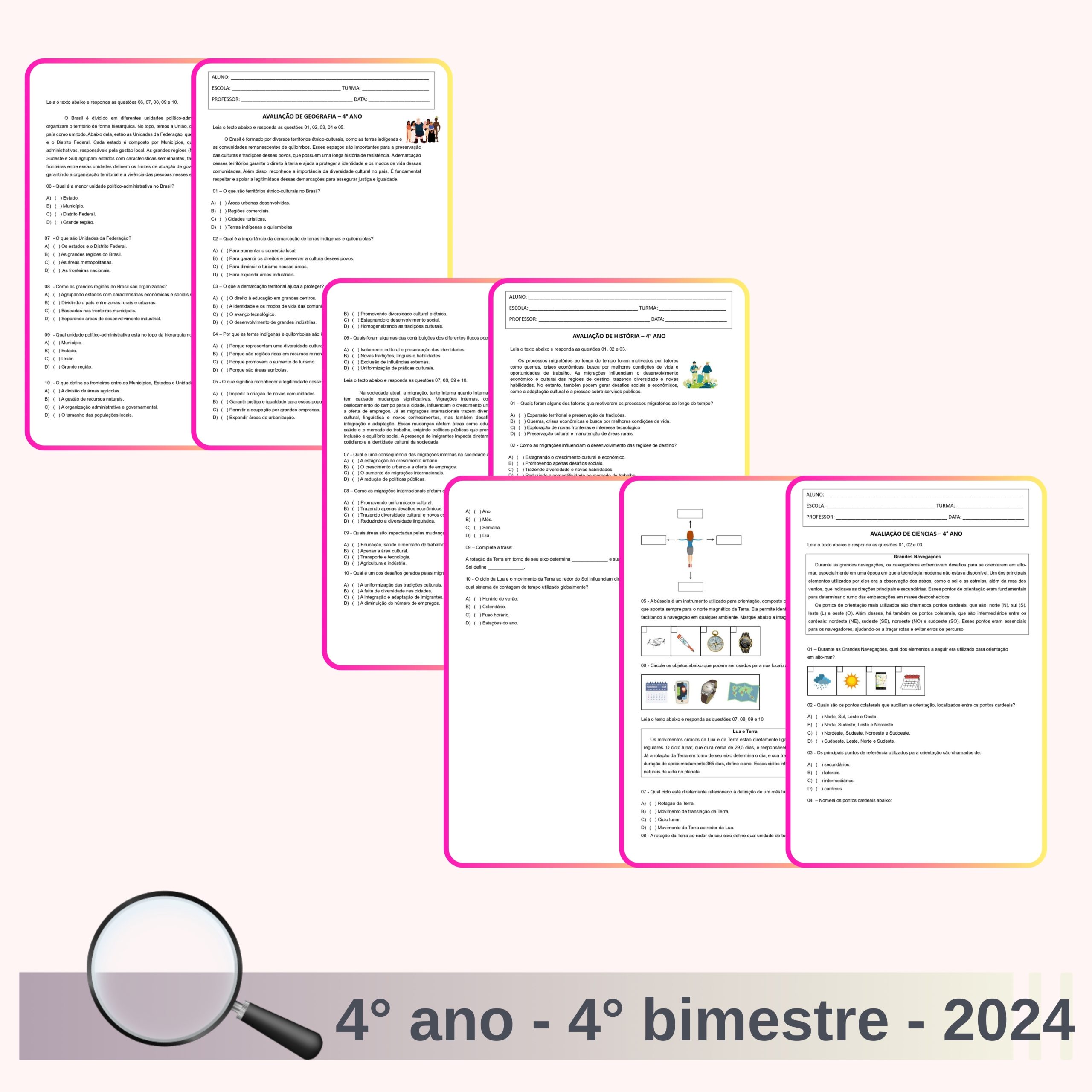 4° ano – Avaliação 2024 – 4° bimestre – Todas as disciplinas